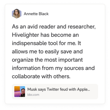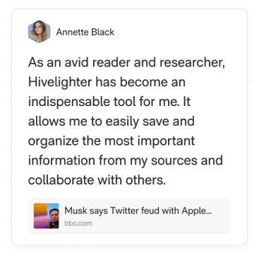 Organize your highlights into Collections on any topic. Invite friends and colleagues to collaborate and add to your Collections in real time.